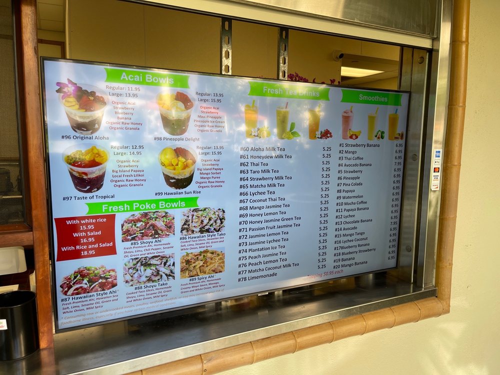 The menu features enticing choices like the Taste of Tropical and Hawaiian Sun Rise acai bowls, bursting with tropical flavors. For seafood lovers, the octopus poke bowl is a must-try, praised for its freshness and generous portions.