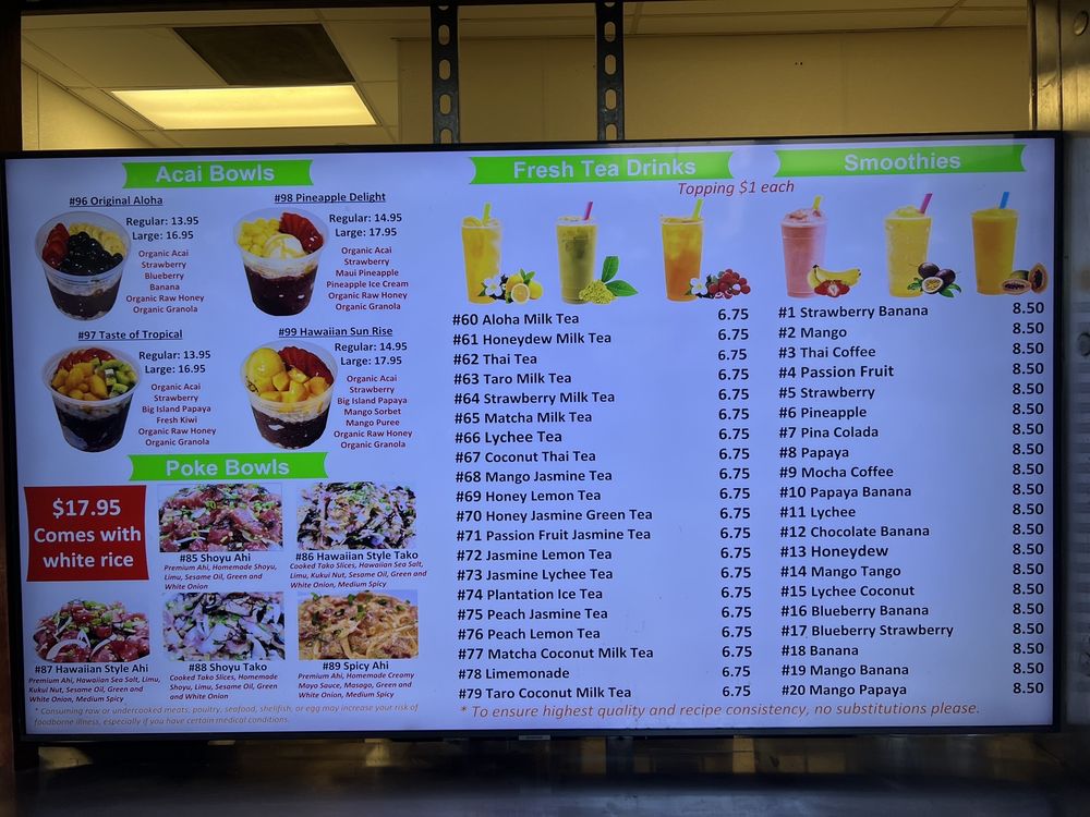 Quench your thirst with refreshing smoothies and a variety of tea drinks, including the aromatic Matcha Milk Tea and delightful Strawberry Milk Tea. Customers rave about the fast, friendly service and the healthy, flavorful options that make Aloha Bowls and Tea a top pick for both locals and tourists alike.